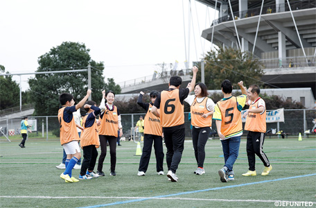 11月2日に、フクダ電子フィールド(千葉県千葉市)にて、「ウォーキングフットボール supported by 古河電工」が開催されました。本イベントには、地元千葉市の方をはじめ、3歳から70代まで、障がいをお持ちの方やサッカー未経験の方など、年齢や性別、障がいの有無、サッカー経験の有無を問わず、約100名が参加しました。また、当社社員もスタッフとしてイベント運営をサポートしました。